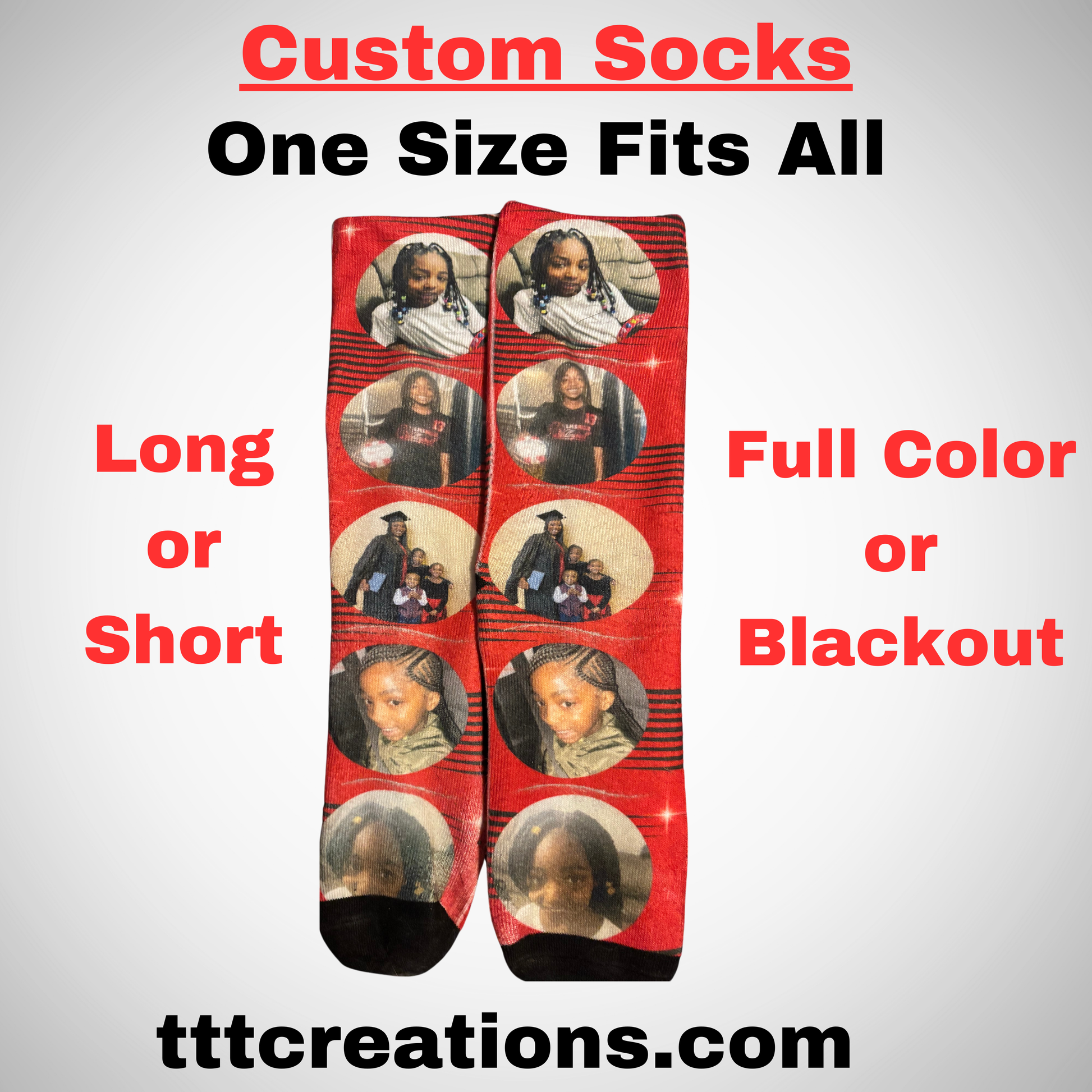 Personalize your socks with pattern, fonts, or photos. Choose your preferences. One Size fits all big kids to adult size