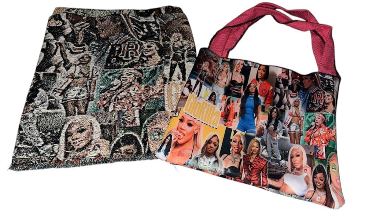 Custom tapestry bag with strap. One-of-a-kind design.